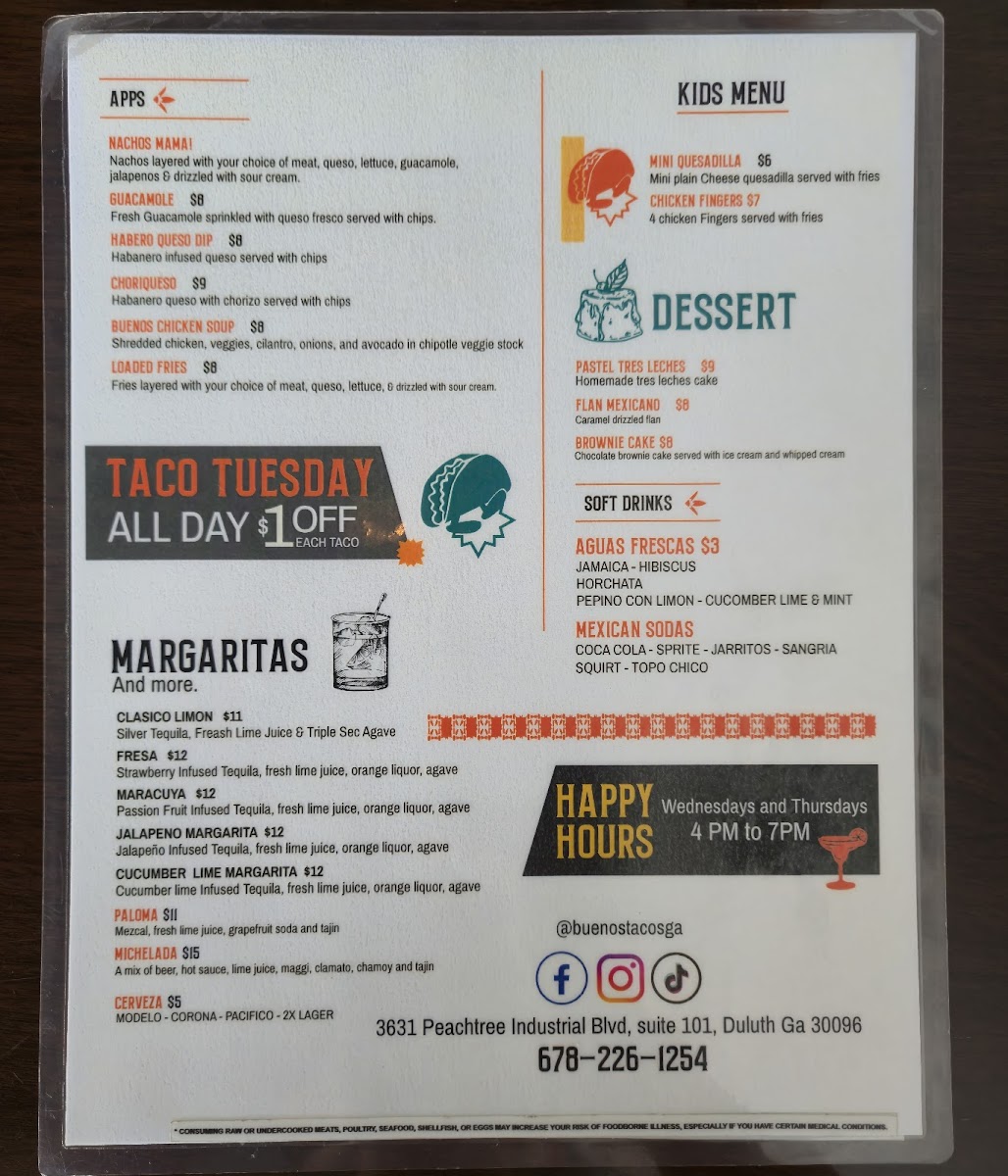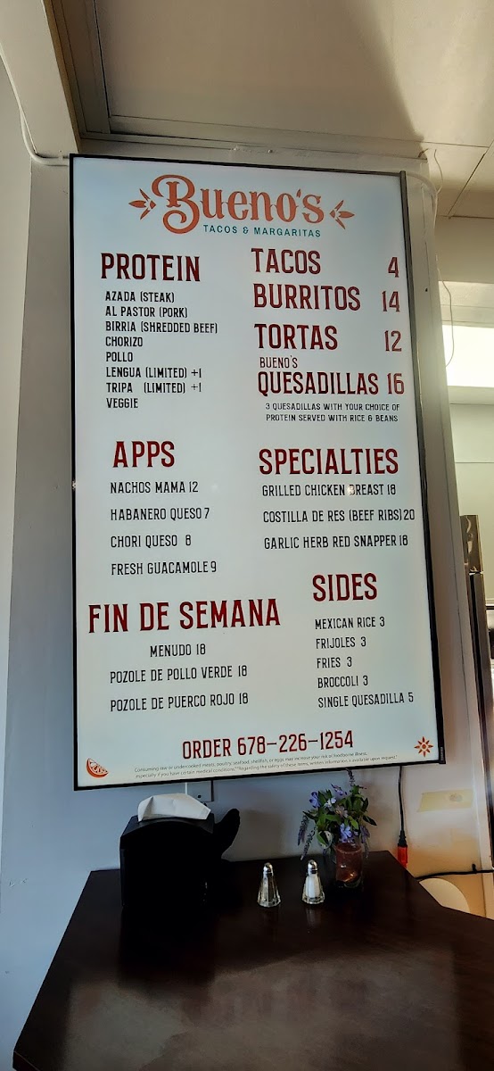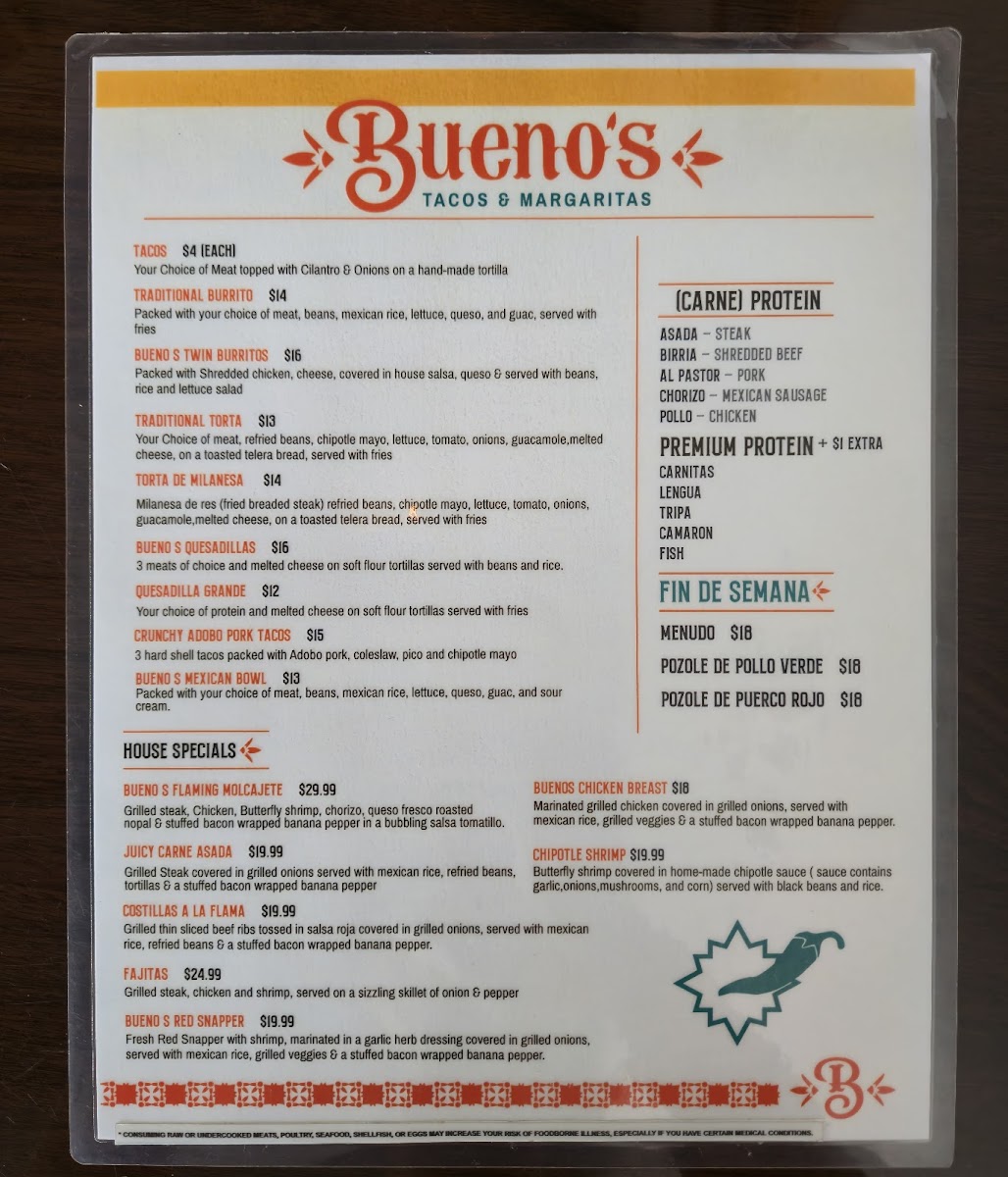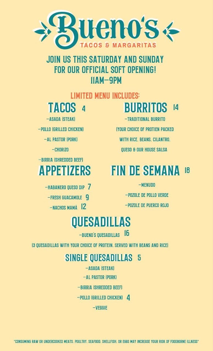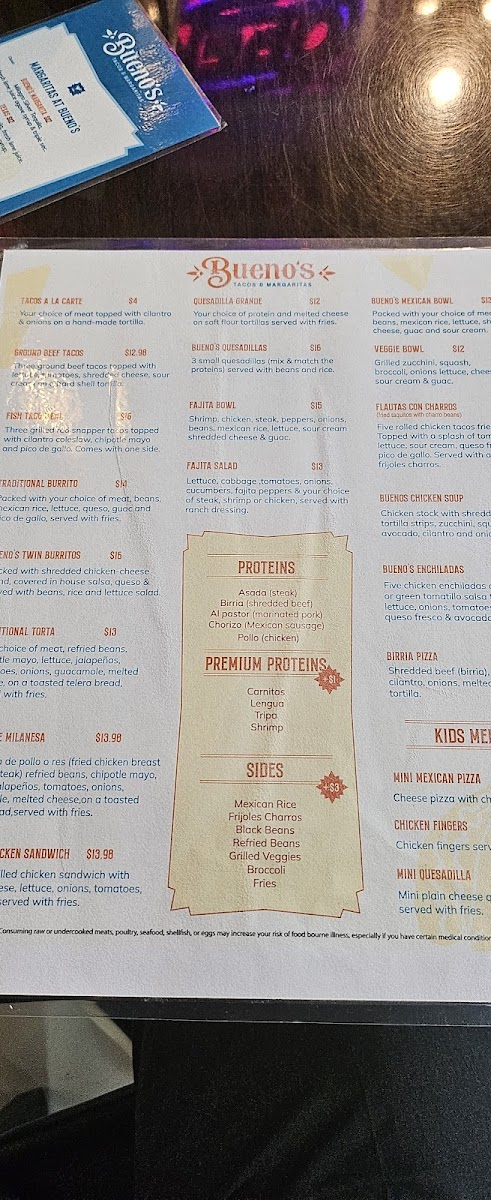 Bueno's Tacos & Margaritas Menu